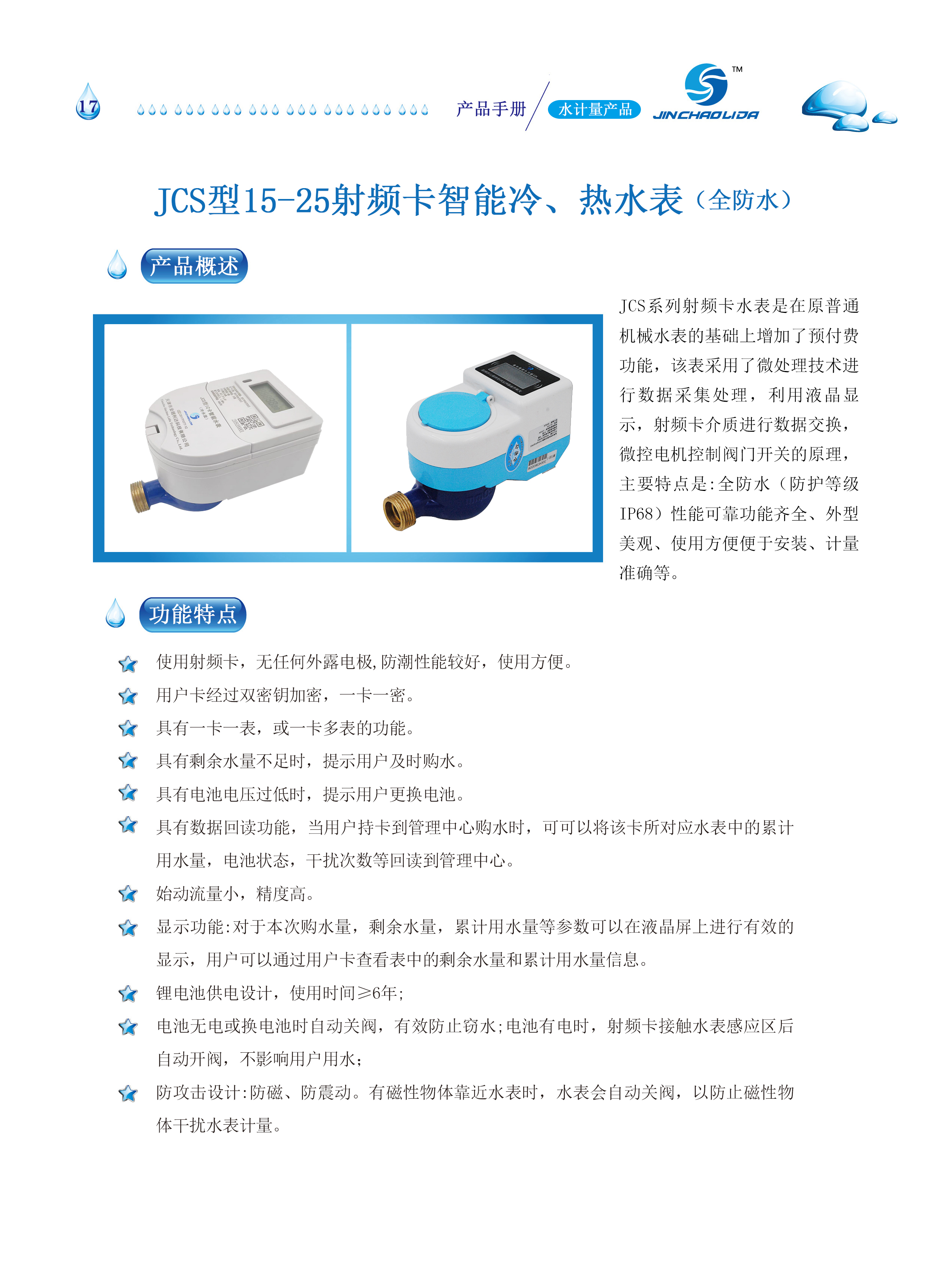JCS型15-25射频卡智能冷、热水表(全防水)